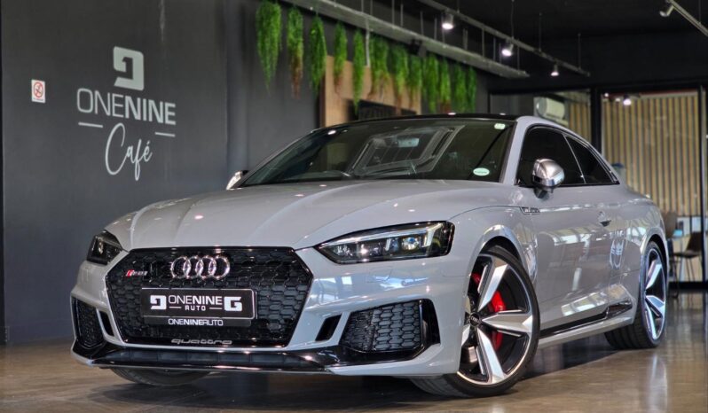 2018 Audi RS5 Coupe 40 000 kms Full franchise service history . Features: Massaging seats Heated Seats Bang and Olufsen Sound System 360 cameras Park assist Sunroof Dynamic drive modes Ambient lighting . Experience the perfect blend of performance and luxury with this 2018 Audi RS5 Coupe Quattro in elegant grey. With a full franchise service history, this vehicle assures you of its well-maintained condition and reliability. Under the hood, a robust 2.9-liter V6 turbo engine delivers an exhilarating 331 kW of power and 600 Nm of torque, ensuring a thrilling 0-100 km/h acceleration in just 3.9 seconds. Designed for the discerning driver, the RS5 offers an impressive top speed of 250 km/h (optionally 280 km/h) and an efficient average fuel consumption of 9.0 l/100 km, making it both a powerful and practical choice for everyday use. Step inside to discover a world of comfort and advanced technology. The RS5’s luxurious interior features premium materials and cutting-edge amenities, providing a sophisticated driving experience. While it doesn’t come with a warranty, its comprehensive service history and Audi’s reputation for excellence provide peace of mind. Whether you’re commuting or taking on open roads, this RS5 Coupe Quattro is an irresistible blend of style, speed, and security. Don’t miss out on this exceptional vehicle that is ready to impress and perform. Contact us today for a viewing and embrace the thrill of driving an Audi masterpiece. . Excluding R5900 Admin fee