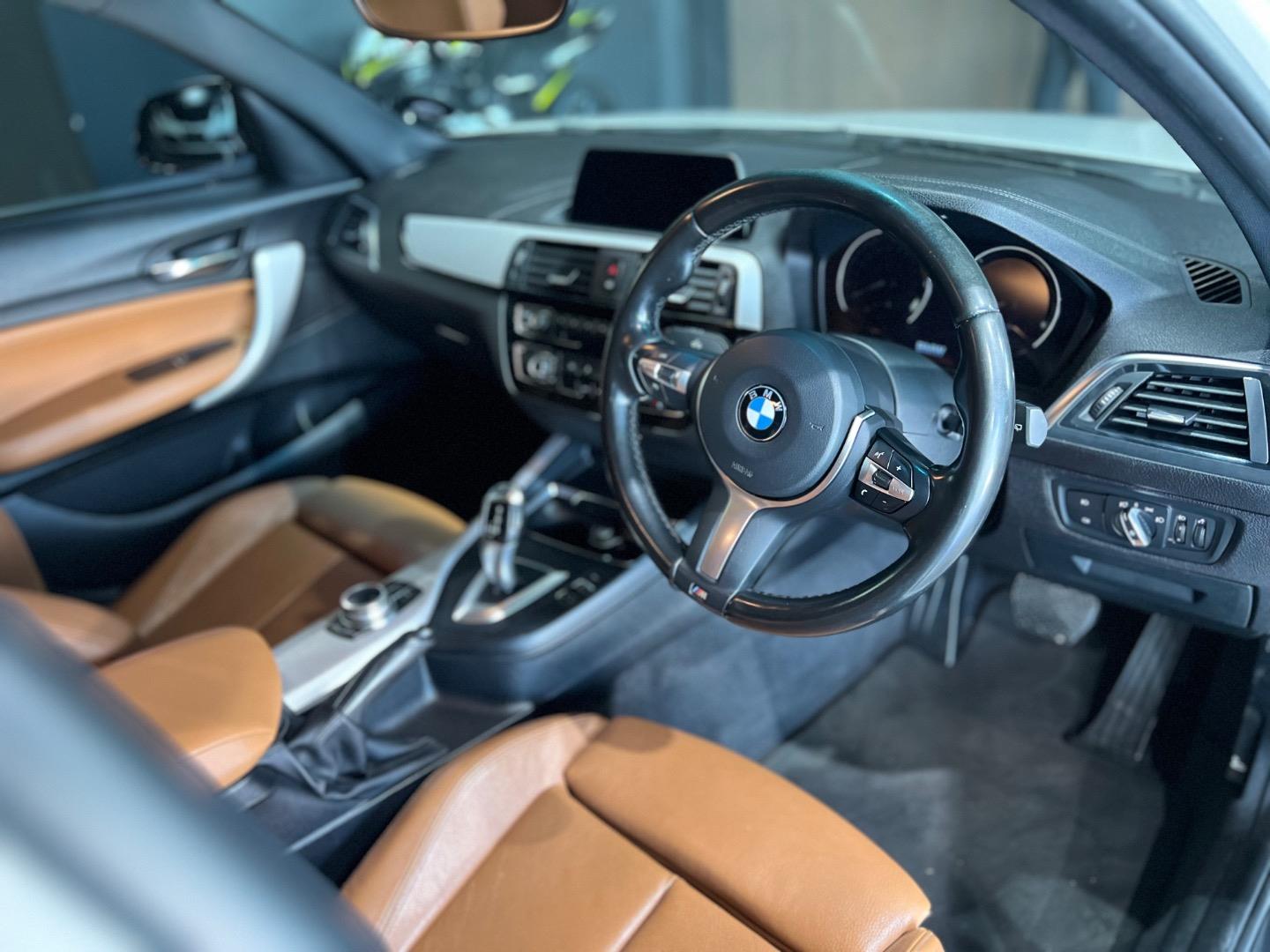 2018 BMW 1 Series 118i 5-Door M Sport Auto 159 000 kms Full franchise service history . Features: Alpine White III Leather 'Dakota' Cognac/Brown highlight (BK) Automatic Transmission Steptronic M Sport package Glass Sunroof, electric with sliding and vent function Sport seats for driver and front passenger Int.trim fin. Alu Hexagon w.highlight trim fin. Black high-gloss Park Distance Control (PDC) Rear LED fog lights LED headlights Front loading CD player Hi-Fi loudspeaker system M Sports Suspension Steering wheel M Leather M Aerodynamic kit1 BMW Individual high-gloss Shadow Line